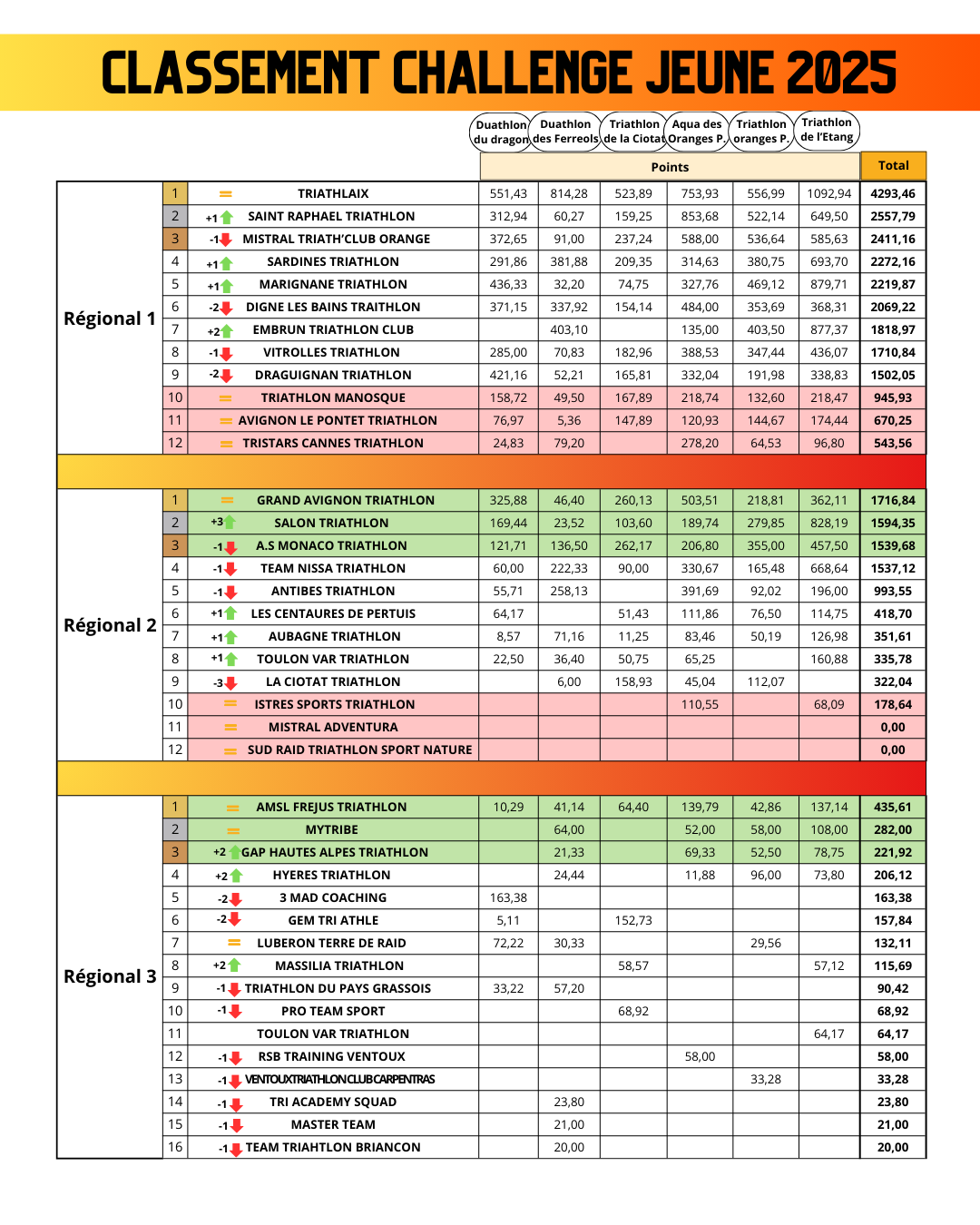 CLASSEMENT 2025 CHALLENGE RÉGIONAL JEUNES